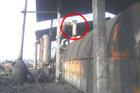 廃棄ゴム熱分解工場の排気管に備えられた触媒(ベトナム、ハイズオン)