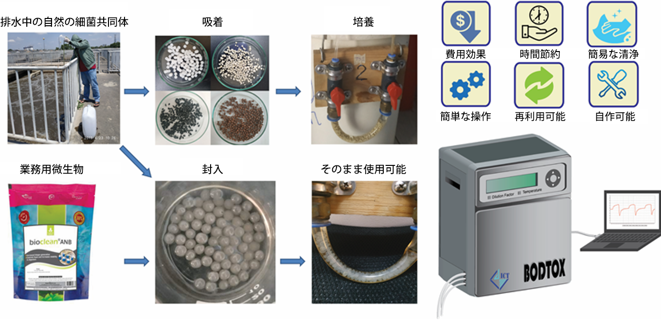 水のBOD5(5日間の生物化学的酸素要求量)測定と水中毒性バイオセンサー装置 (BODTOX)の開発