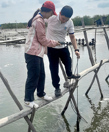 溶存酸素の消費量に加え、CO₂生成量にも着目したバイオセンサーを設計しており、河川水、養殖排水、産業排水など、さまざまな水環境への応用が可能です。現在は、BODと毒性を同時に検出できるハードウェア・ソフトウェア統合型システムの開発を進めており、予測精度の向上を目的として機械学習アルゴリズムも活用しています。ベトナムの実環境で使用可能な、実用的かつ低コストな水質モニタリング技術の実現をめざしています。